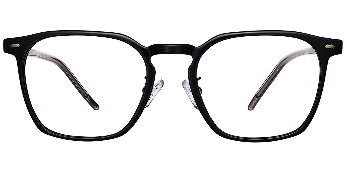 This full-rim TR-constructed eyeglass frame uses a wide square lens shape to create a bold yet balanced look. The front is visually generous in width, giving good coverage across the face, while the square corners convey modern structure. The temples align seamlessly from the front, preserving a cohesive visual flow from face to side—an effective choice when you want presence with polish.